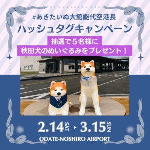 ③「#大館能代空港」「#あきたいぬ大館能代空港長」、この2つのハッシュタグをつけて投稿